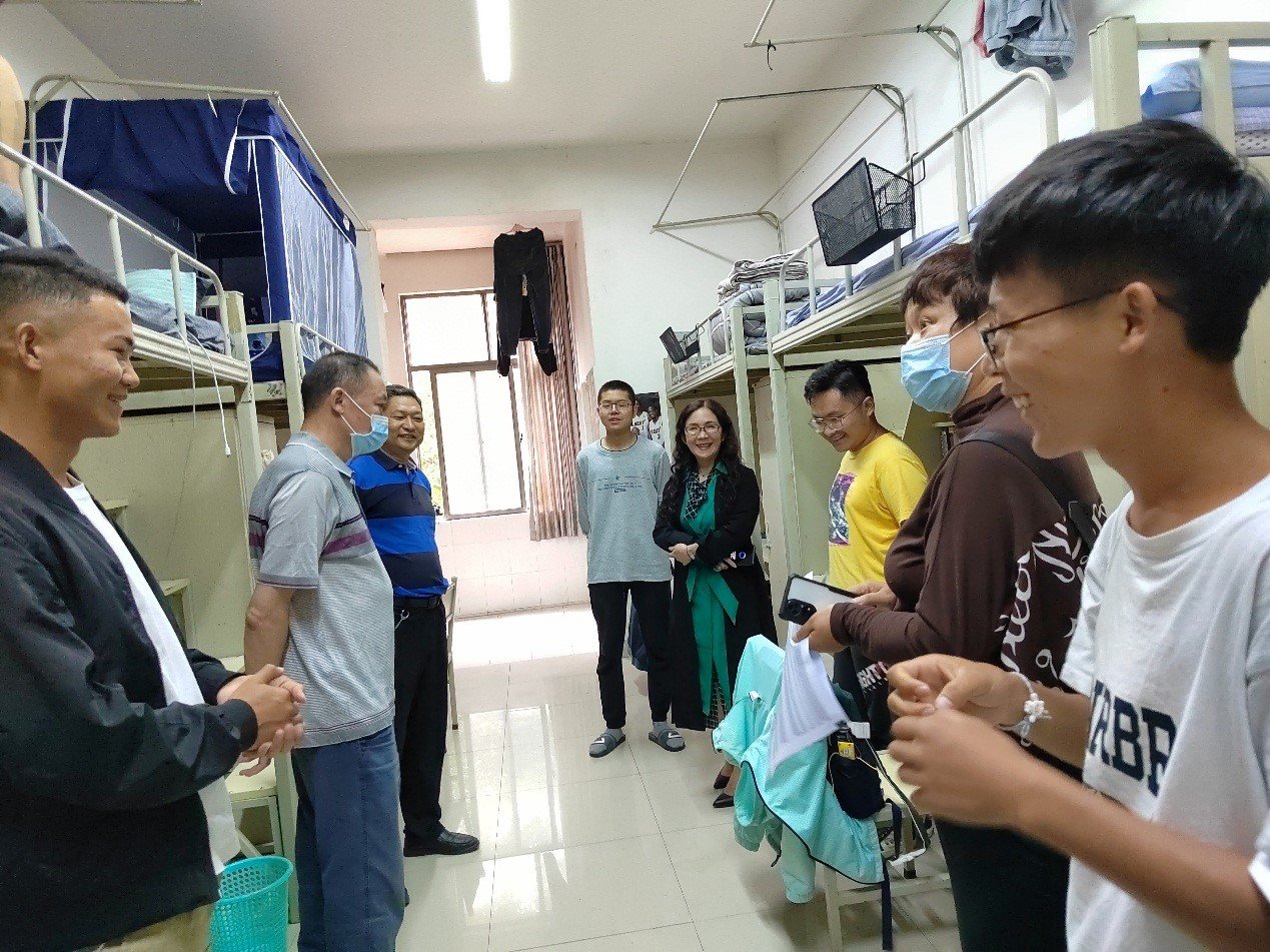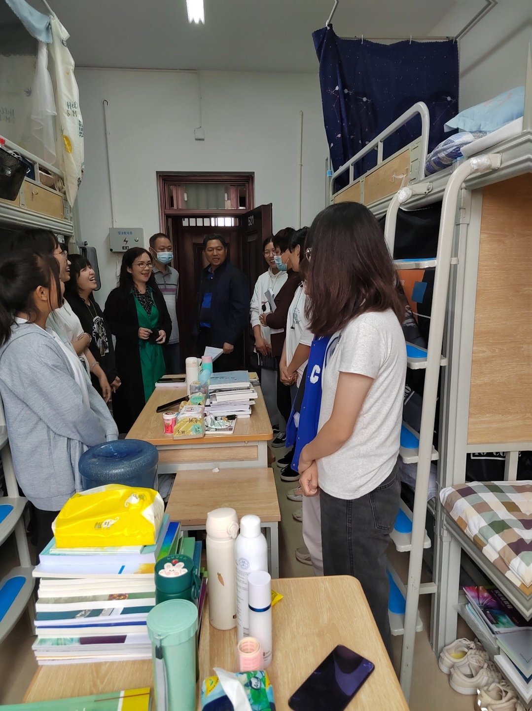 党委书记李作森、院长刘雅婷带领学院领导班子成员及2022级辅导员、班主任走访新生宿舍。
