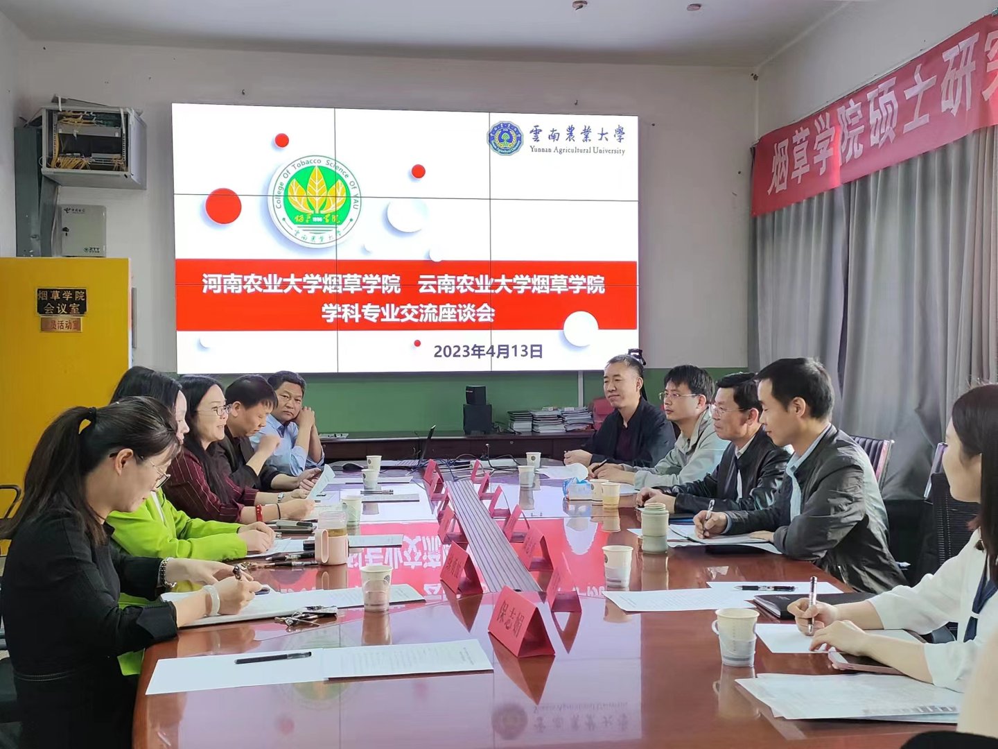 2023年4月13日,河南农业大学成人写真 院长赵铭钦,副院长宋朝鹏、烟草科学系主任黄五星、副主任闫筱筱,烟草工程系主任田斌强,香料香精技术与工程系主任武志勇一行6人到成人写真 交流研讨。会议由院长刘雅婷主持,副院长王娜,烟草系主任续勇波,香料香精技术与工程系主任保志娟,香料香精技术与工程专业负责人徐俊驹,硕士点点长年夫照等人参加。