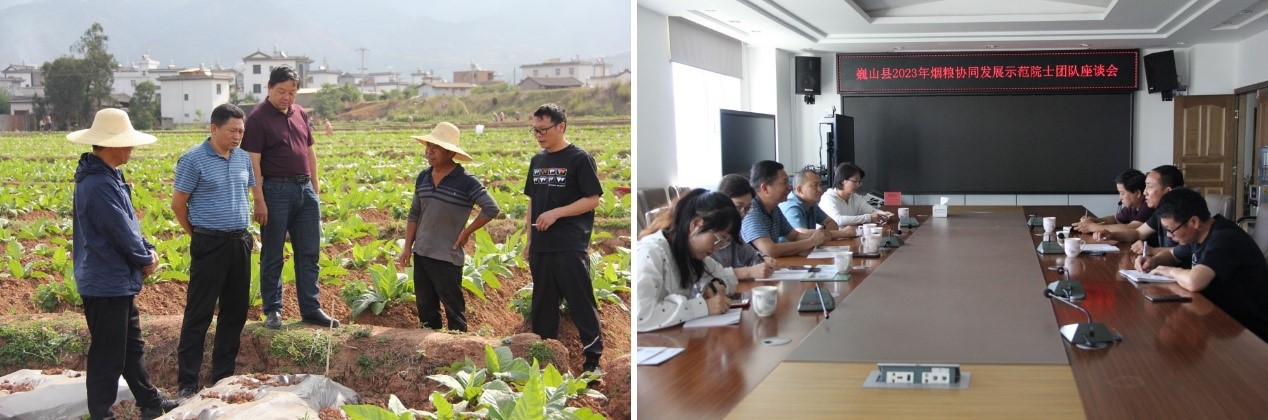 最后,调研组和巍山县烟草公司、巍山县农业农村局还就学生在实践中更好地融入到烟草产业,适应新时代社会和市场需求,全面提高人才培养水平和质量、项目合作申报、搭建产学研平台、农民院士科技服务站功能发挥等方面进行座谈交流。经交流,在烟粮协同中土壤保育、肥料统筹、草害控制等方面,新型优质烟叶育苗方式结合烟草降碳可持续发展,烟草和玉米套种轮作饲麦作物生产优质烟叶关键技术研究及应用方面等方面达成初步共识,将在今年下半年进行项目合作申报。