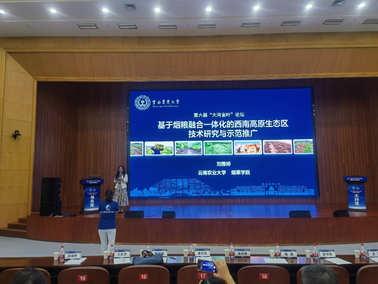 的成就以及云南烟草现代产业学院的建设情况,并希望通过多方合作共同搭建高质量的学术交流平台,实现优势互补,合作共赢,共同推动云南农大烟草现代产业学院的高质量发展和人才培养。刘院长同时介绍了粮烟融合一体化绿色发展项目的实施方案,布局云南省核心烟区构建烟粮协同高效种植模式,提升云南省粮食安全保障能力,解决核心烟区“三稳定”问题。其他15位专家的报告内容涵盖生物育种、智慧农业、精准烘烤与智能化、数字化调香技术等多个领域,阐述了科学研究的前沿动态,围绕行业热点,多层面多角度进行理论研讨。