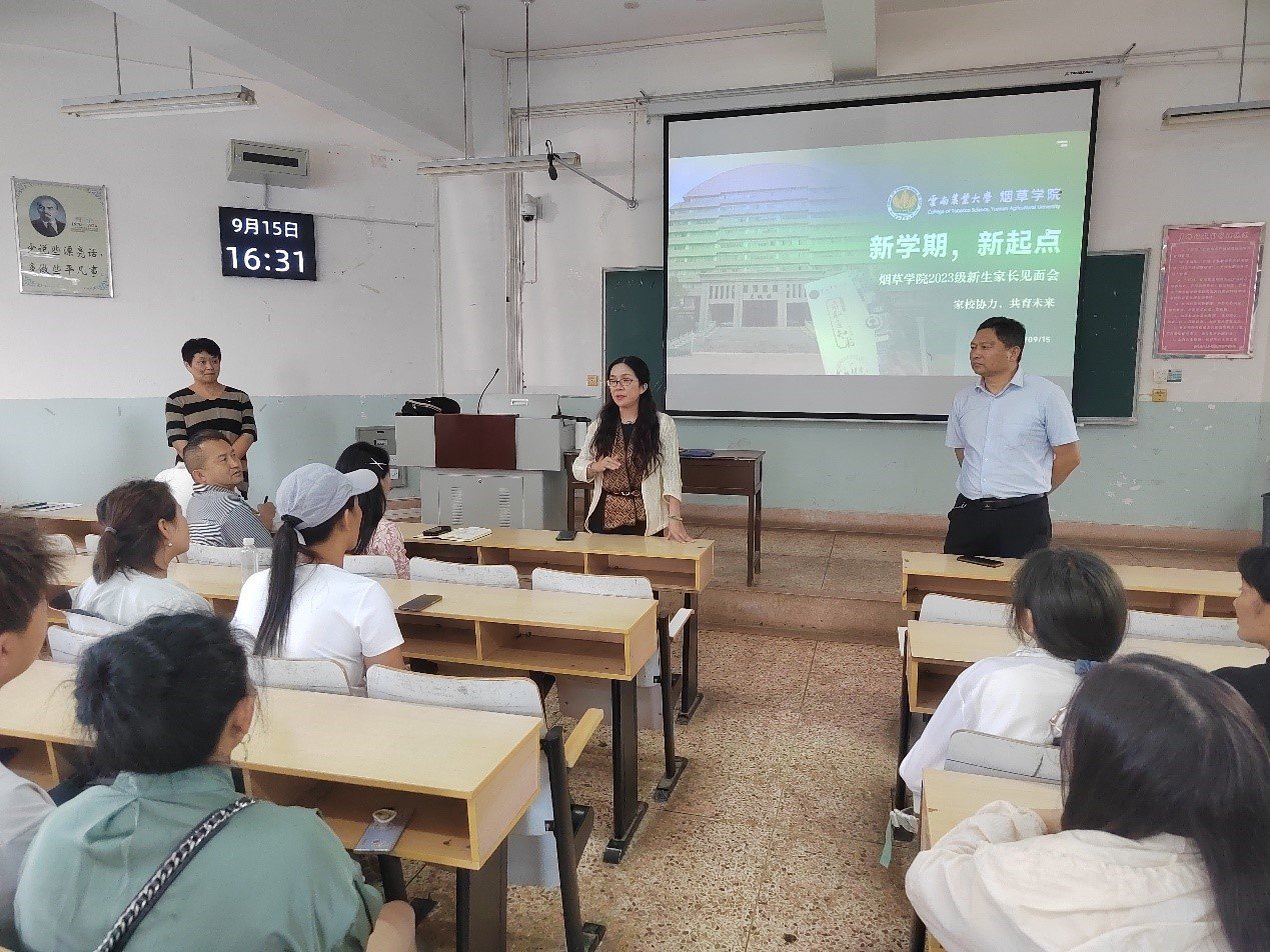 于9月15日下午在尚农楼216教室召开了2023级新生家长见面会。学院党政领导班子、各专业负责人、新生班主任、学业班主任、辅导员及新生家长等共计100余人参加会议。