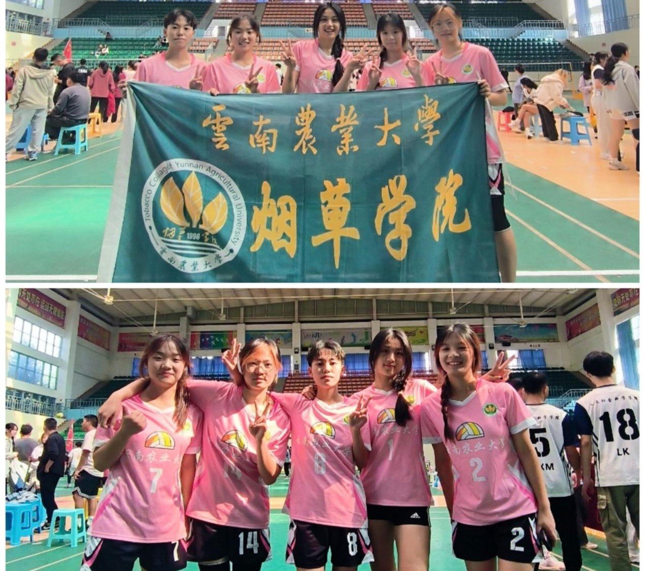 在整个系列赛期间,女排队员们在场下日复一日进行着挥汗如雨的训练并凭借着“学无止境,行以致远,更高更强”的信念向对手虚心学习,才促成场上一个个精彩的拦网、扣球。然而夺冠之路并非一帆风顺,半决赛与热带作物学院战况焦灼,在女排队员的团结努力下,每一个传球都凝聚着智慧与团结,获得2:0压倒性胜利;最终我们与经管学院进行了冠军争夺赛,在烟草女排的冷静发挥下夺得冠军。