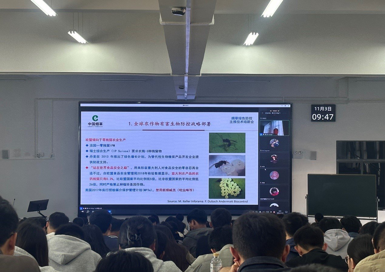 本次专题讲座,杨金广教授为学生详细讲解了烟草绿色防控科技创新的目的、意义和路径,学生们开拓了视野,转变了观念,对烟草绿色防控有了更新的认识,受益匪浅。