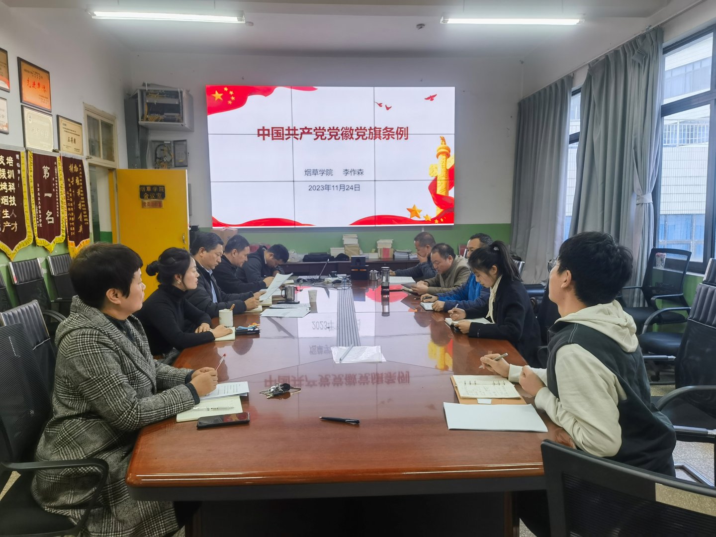 随后,党委书记李作森从中国共产党党徽党旗条例的出台背景、原则和全文三部分进行了主题发言,通过对《中国共产党党徽党旗条例学习》学习,使大家了解党徽党旗的正确使用方法和审批管理等相关规定。