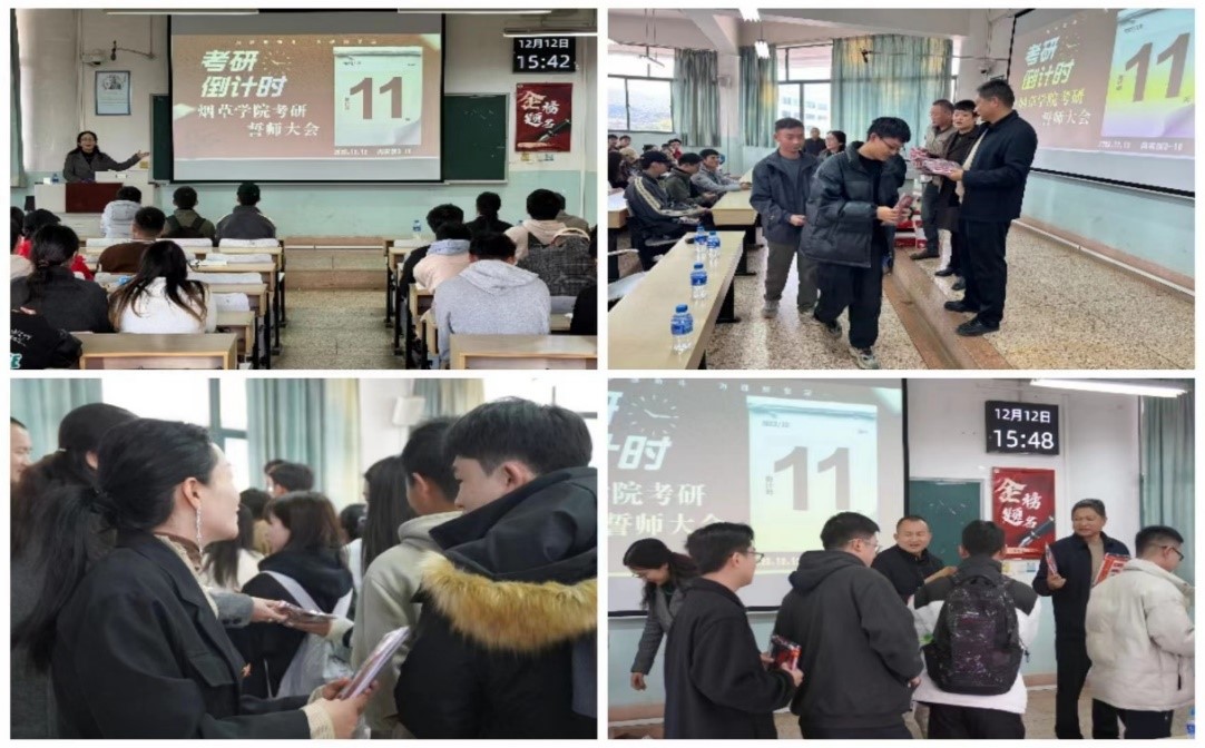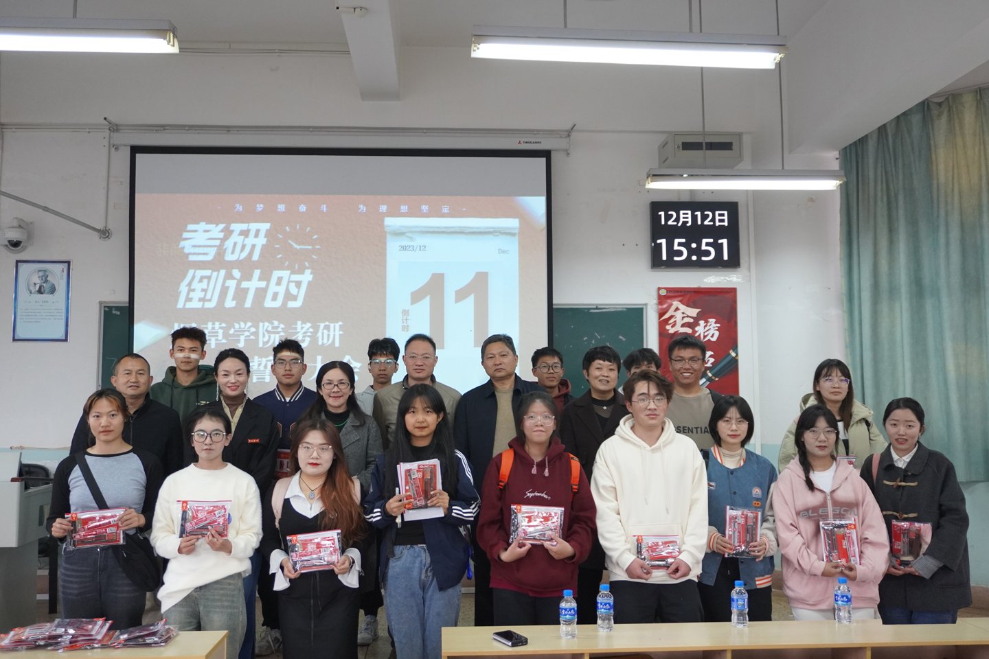 为进一步激发学生考研斗志,坚定考研信念,助力考研学子跨越“最后一公里”,20231212日下午,成人写真 2024届考研誓师大会在尚农楼3-16教室举行。院党委书记李作森、院长刘雅婷、组织员陈建斌、院党委副书记王丽萍、副院长王娜、学工办主任谭正新以及2020级全体考研学子参加此次活动。