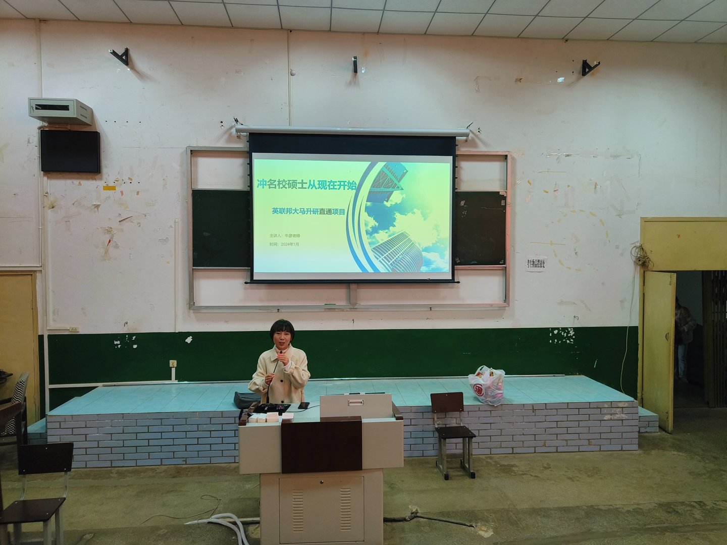 杜宇、周鹏老师以及数十位2024届毕业生参加宣讲会。会议由杜宇老师主持,乔乔国际教育公司牛彦老师主讲。