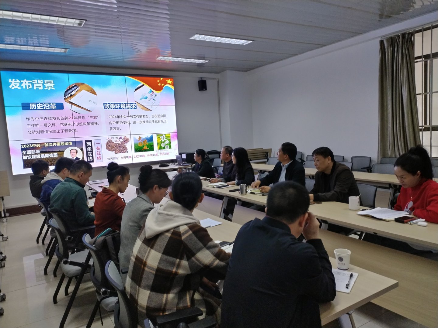 随后,刘雅婷院长作了 “2024年中央一号文件《中共中央 国务院关于学习运用“千村示范、万村整治”工程经验有力有效推进乡村全面振兴的意见--学习解读”的 主题发言。带领大家深入学习及贯彻落实文件精神,结合学院实际,提出通过加强烟草科技创新,继续推进“粮烟协同”等项目实施,推动行业产业结构优化向高质量发展。