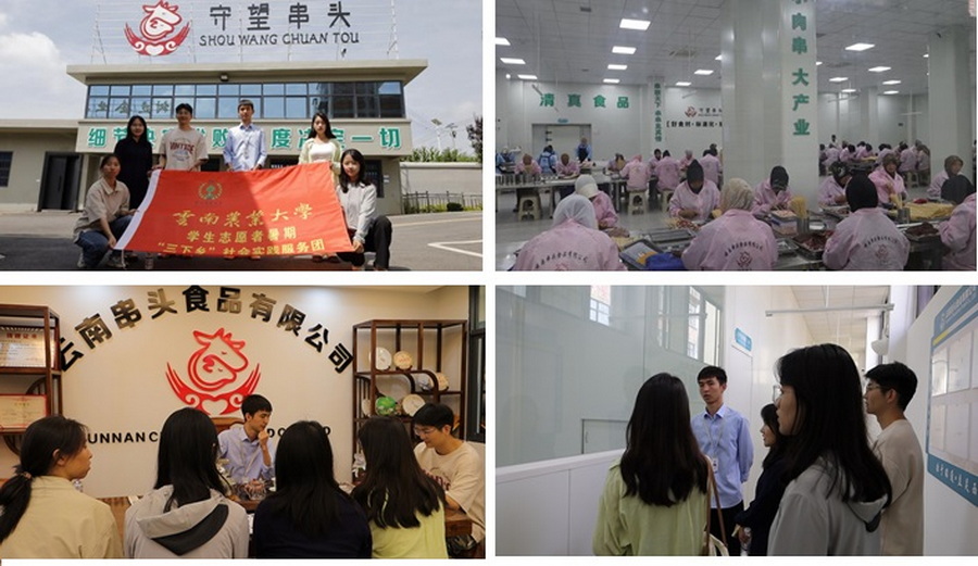 乡村有着丰富的旅游资源,依托乡村生态资源和文化资源发展起来的乡村旅游是乡村特色产业的重要组成部分。8月20日,实践团前往八仙营中共党史学习教育基地进行参观学习,深入了解守望乡与人民解放军第四十三师的深厚历史渊源与感人至深的革命故事。在守望乡党委领导的陪同下,访客们参观了八仙清真大寺与四十三师指挥部旧址等历史遗迹,并在云南串头食品有限公司实地考察了牛肉加工产业链的发展现状与市场前景。在党史学习教育基地内,一幅幅珍贵的历史照片与翔实的史料资料让同学们仿佛回到了那个烽火连天的革命年代,深切感受到了革命先烈的英勇无畏与无私奉献精神。在八仙清真大寺的庄严氛围中,访客们聆听了关于四十三师英雄事迹的生动讲述,内心充满了对革命先烈的敬仰与缅怀之情。在云南串头食品有限公司的实地探访中,我们深入考察了昭通小肉串的手工腌制生产线。该公司秉持着严谨的质量管理体系,坚持将产品质量视为生命线,其全手工穿制生产线更是彰显了对品质的极致追求。在与串头公司马经理的深入交流中,我们得知,该公司的小肉串系列产品已远销至全国19个省市。实践队对当地牛肉产业及烧烤产业的蓬勃发展态势,充满了坚定信心与深切期待。此次学习,我们深刻领悟到了“牛肉原产地特色+原材料加工”这一核心发展模式的重要性,它有力地推动了第二产业对第一产业的发挥积极带动作用,为实现农业与工业的融合发展提供了宝贵经验。