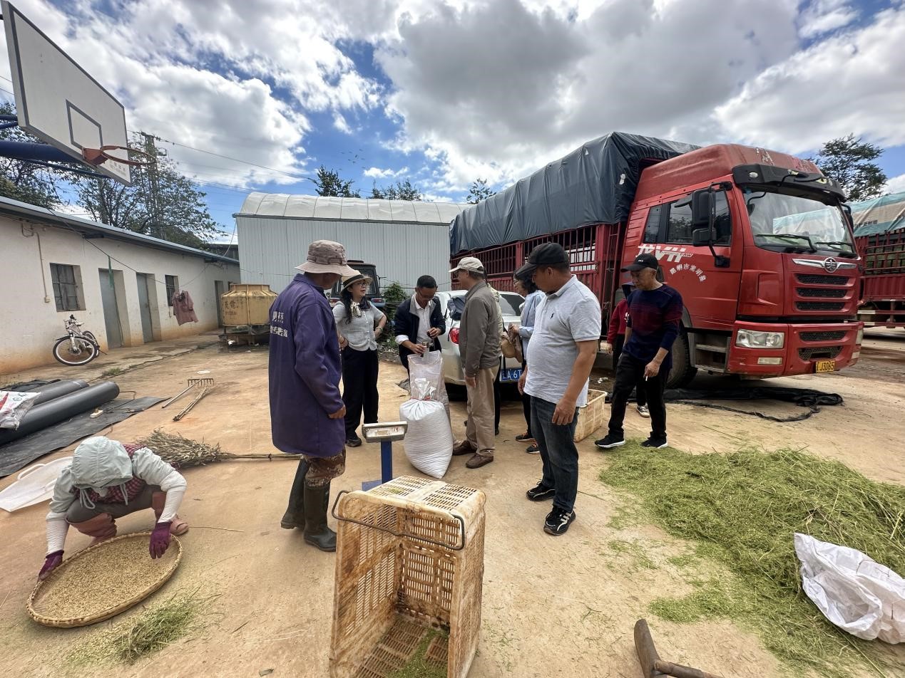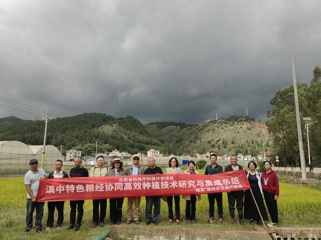 ——“2025 年滇中特色粮经协同高效种植技术研究与集成示范” 中的稻菜轮作水稻,进行实收测产。经科学测算,项目示范田水稻亩产处于合理区间,阶段性完成年度产量任务,为滇中地区粮经协同种植模式的后续推广提供了坚实数据支撑。