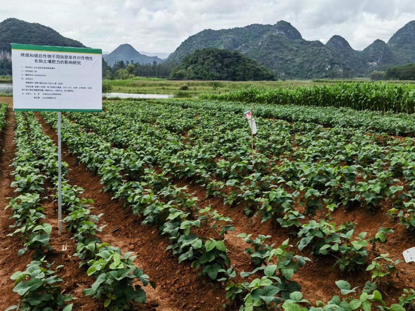 会前,在州、县、乡镇和烟草公司相关领导的陪同下,黄鹤平一行视察了粮烟协同烟后玉米和烟后大豆试验示范基地。丘北农民院士科技服务站长罗以贵介绍了自今年4月以来,丘北农民院士科技服务站试验示范基地开展的烤后大豆、玉米品种筛选和烟后玉米与大豆生产试验示范,开展试验示范的目的、目标和工作进展等情况。
